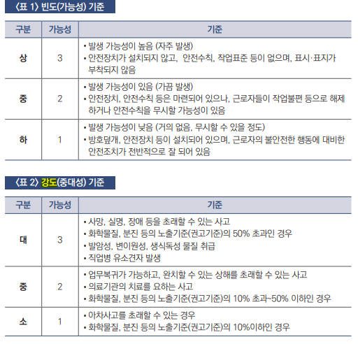 위험성 평가라는게 어떻게 보면 굉장히 주관적으로 판단하기 쉽기에 나라에서 정해둔 기준이 있습니다.