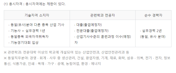 즉 산업안전 산업기사 자격 요건을 취득한다면 건설안전산업기사 소방설비산업기사 산업위생관리산업기사 소방설비산업기사 자격증을 딸 수 있다.